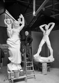 On May 4, 1956, Queen Juliana unveiled the National Monument on Dam Square. The monument was designed by architect J.J. P. Oud, who was considered the pioneer of the Nieuwe Bouwen style. The sculptures were made by Johannes Anton (John) Rädecker (1885 - 1956), the reliefs by Paul Grégoire (1915-1988). Rädecker and Grégoire both studied at the Rijksakademie, from 1906 to 1910 and from 1936 to 1941 respectively. In 1948 they were commissioned for the monument.