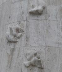 Rädecker modeled the female figure surrounded by pigeons (‘The Virgin on the Dam’) after the regular and popular model of the Rijksakademie Truus Trompert (1915-1977). Her actual name was Anna Sophia Maria Elisabeth (Fie) Borghmans. Later, after a marriage, Fie Trompert. At the end of the 1940s, now a widow by war, she earned her money as a professional model, amongst others for drawing teacher Willem Papenhuijzen, who called all his models Truus, perhaps for privacy reasons. Fie became Truus and for almost forty years she modeled for dozens of upcoming and established painters and sculptors such as Hildo Krop, Rädecker and Charlotte van Pallandt.